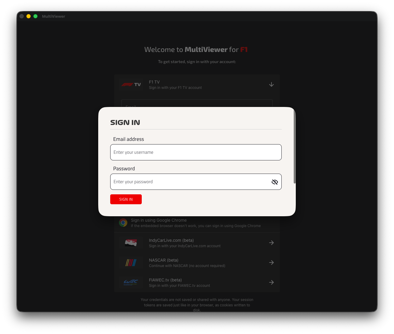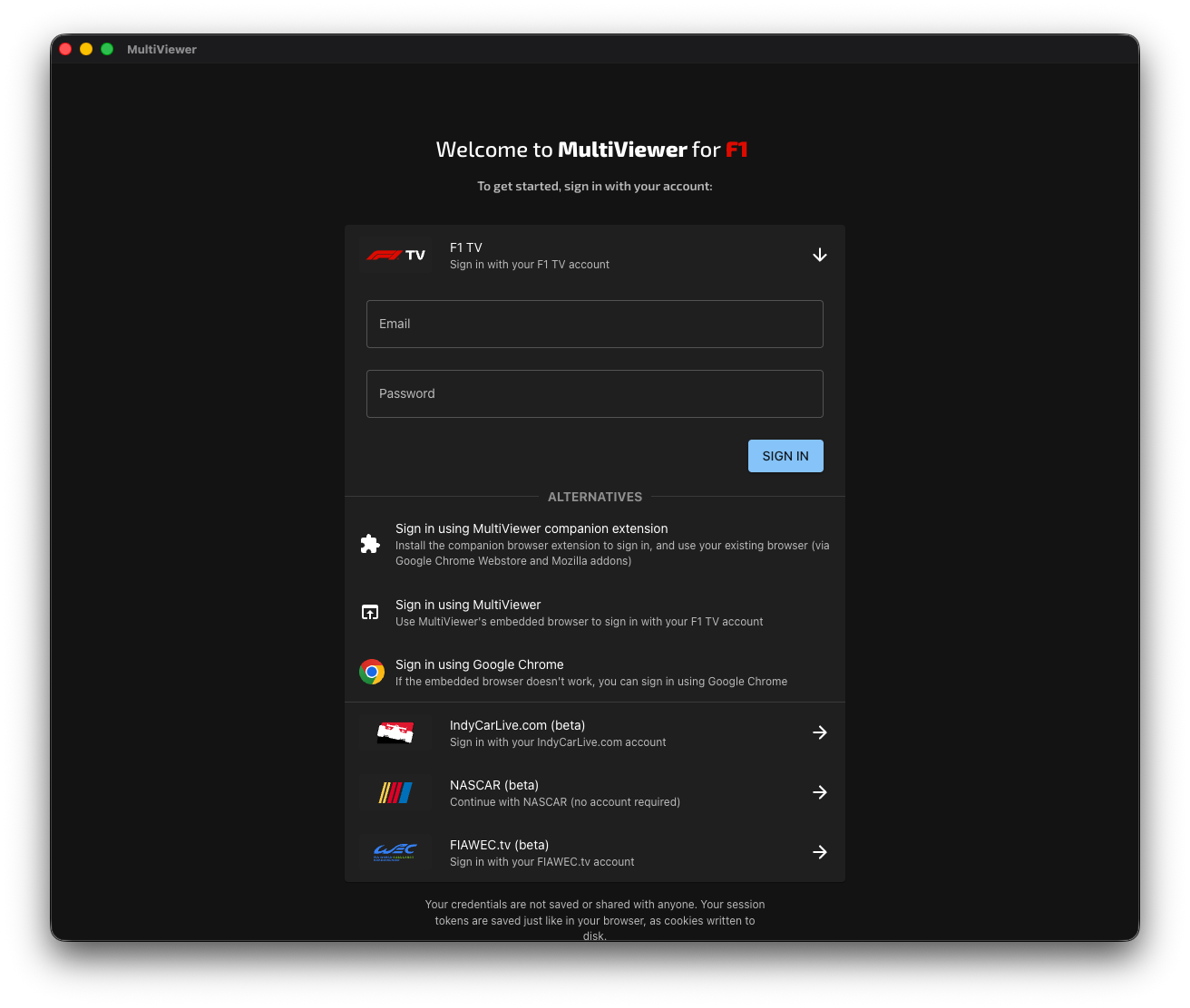 For F1 TV, we have various ways to sign in, but the recommended way is to use your F1 TV email and password directly in MultiViewer.